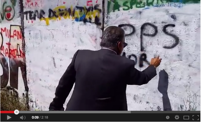 نبيل بن عبد الله يتضامن مع فلسطين بالكتابة على جدار الفصل العنصري