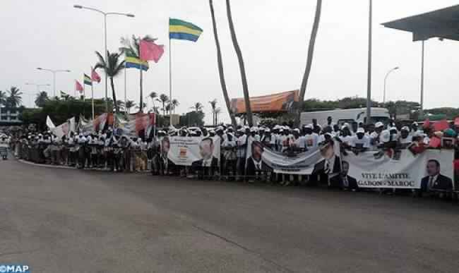 فعلى طول الطريق التي مر منها موكب جلالة الملك وفخامة الرئيس الغابوني السيد علي بونغو أوديمبا، من مطار ليون مبا الدولي إلى ساحة القصر الرئاسي، احتشدت جماهير غفيرة من المواطنين الغابونيين ومن أفراد الجالية المغربية المقيمة بهذا البلد، للترحيب بضيف الغابون الكبير، والتعبير عن فرحتها وغبطتها بهذه الزيارة الملكية واعتزازها بعلاقات الصداقة والتعاون القائمة بين البلدين.