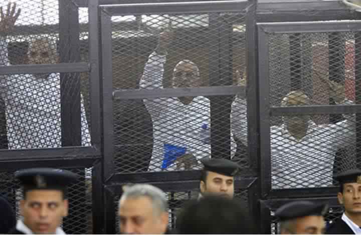 أصدرت محكمة الجنايات المصرية حكماً بالسجن المؤبد على الرئيس الأسبق محمد مرسي ومرشد الإخوان محمد بديع، ورئيس مجلس الشعب السابق سعد الكتاتني والقيادي الإخواني عصام العريان، بينما أصدرت أحكاماً بالإعدام شنقاً على كل من خيرت الشاطر ومحمد البلتاجي، وذلك في قضيتي “التخابر الكبرى”، و”اقتحام السجون” وذلك بعد استطلاع رأي المفتي في إعدامهم.